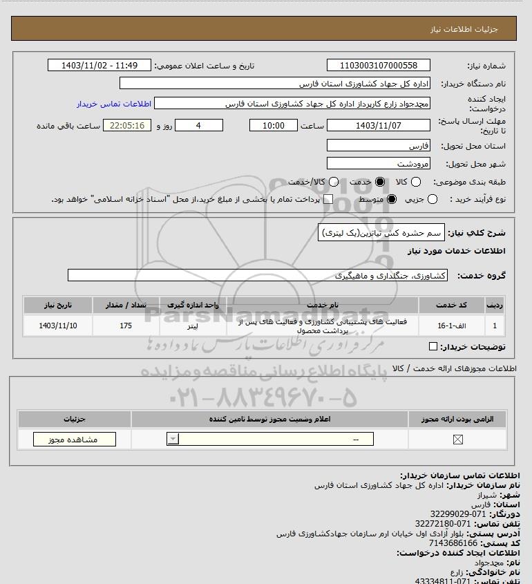 نام دستگاه خریدار:اداره کل جهاد کشاورزی استان فارس
