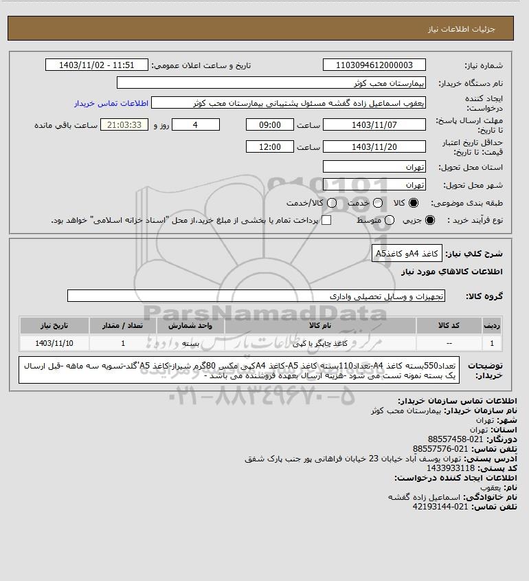 شرح کلی نیاز: کاغذ A4و کاغذA5