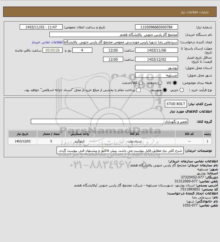 شرح کلی نیاز: STUD BOLT