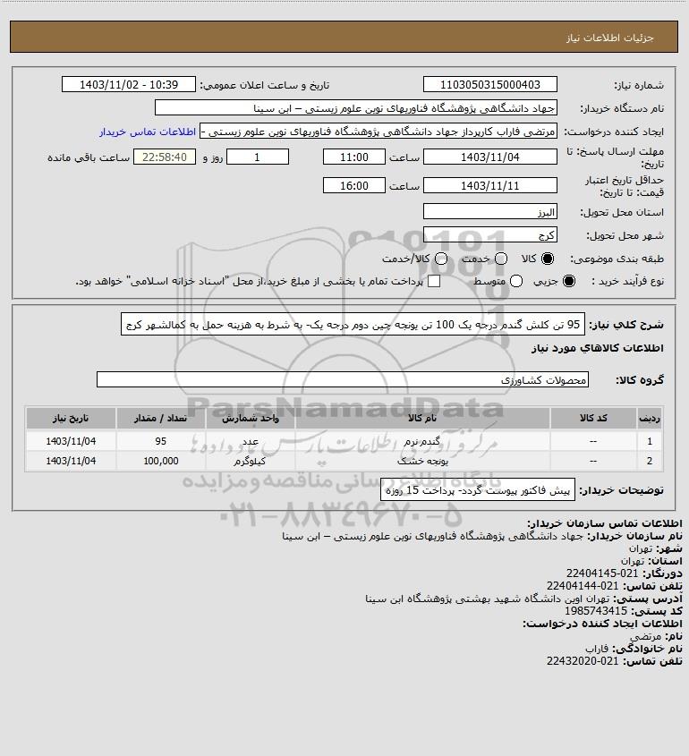 | 1 | -- | گندم نرم | عدد | 95 | 1403/11/04 |
