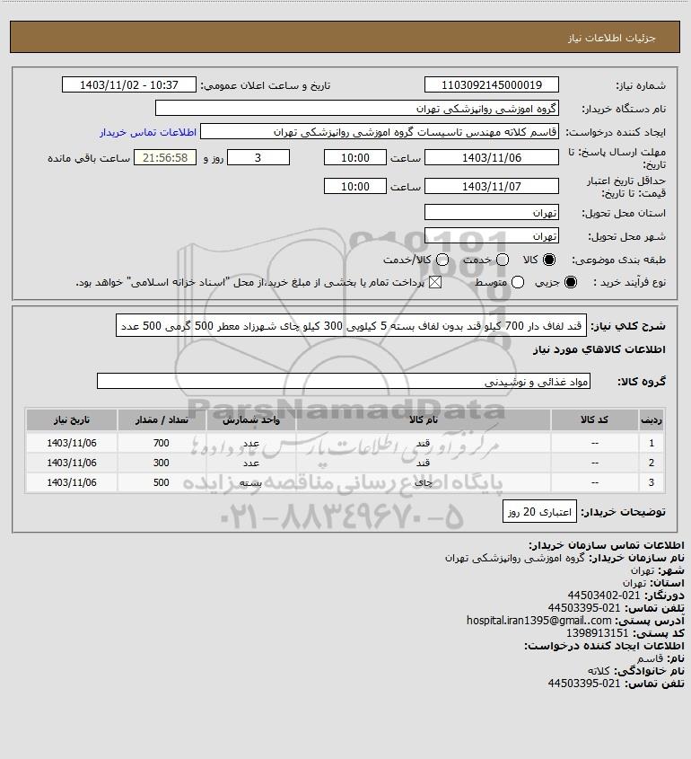 نام سازمان خریدار: گروه اموزشی روانپزشکی تهران