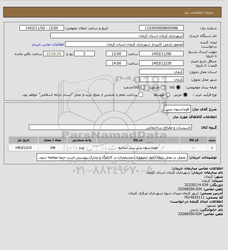 | 1 | -- | فونداسیون بتنی پیش ساخته | عدد | 340 | 1403/11/15 |