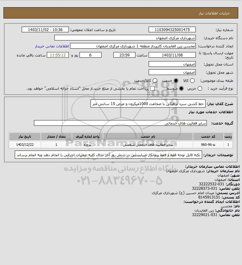 شرح کلی نیاز: خط کشی سرد ترافیکی با ضخامت 1000میکرون و عرض 15 سانتی متر