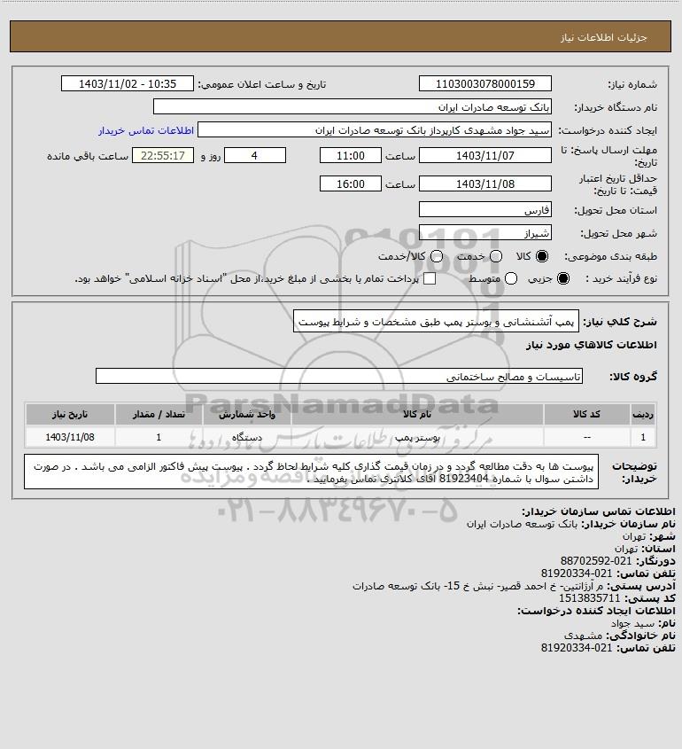 استعلام پمپ آتشنشانی و بوستر پمپ طبق مشخصات و شرایط پیوست, استعلام پمپ آتشنشانی و بوستر پمپ طبق مشخصات و شرایط پیوست
