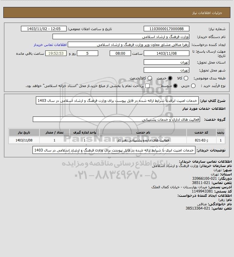 شرح کلی نیاز: خدمات امنیت ابری با شرایط ارائه شده در فایل پیوست برای وزارت فرهنگ و ارشاد اسلامی در سال 1403