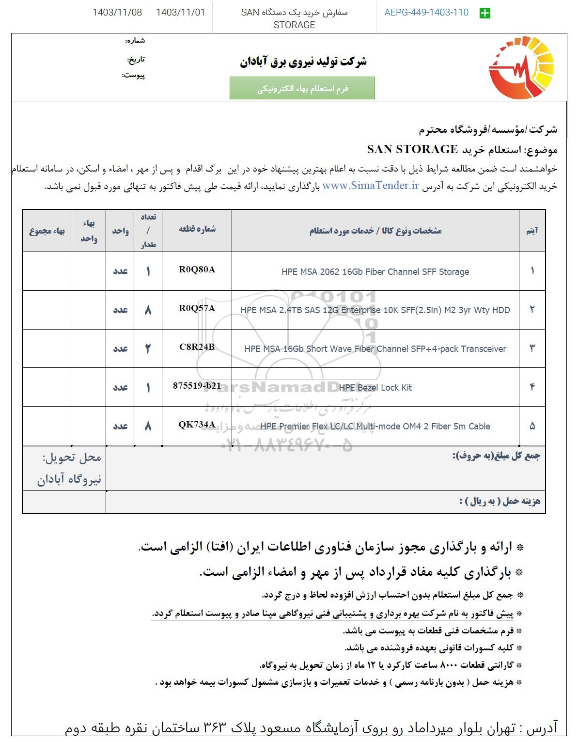 استعلام خرید SAN STORAGE, استعلام خرید SAN STORAGE
