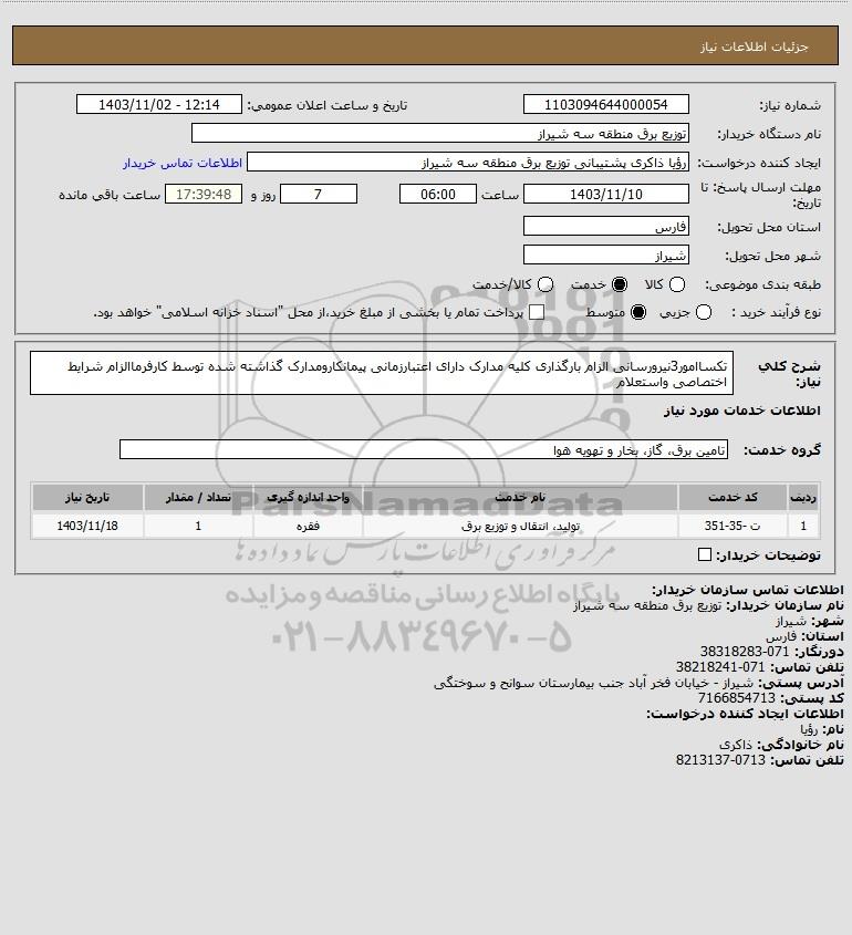 نام دستگاه خریدار:توزیع برق منطقه سه شیراز