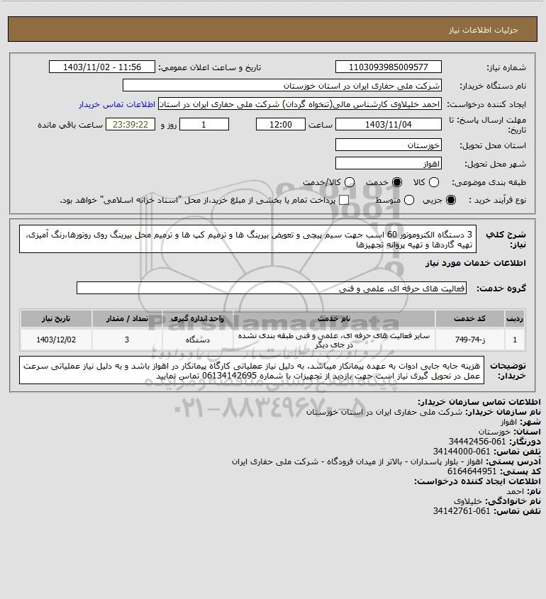 نام دستگاه خریدار:شرکت ملی حفاری ایران در استان خوزستان