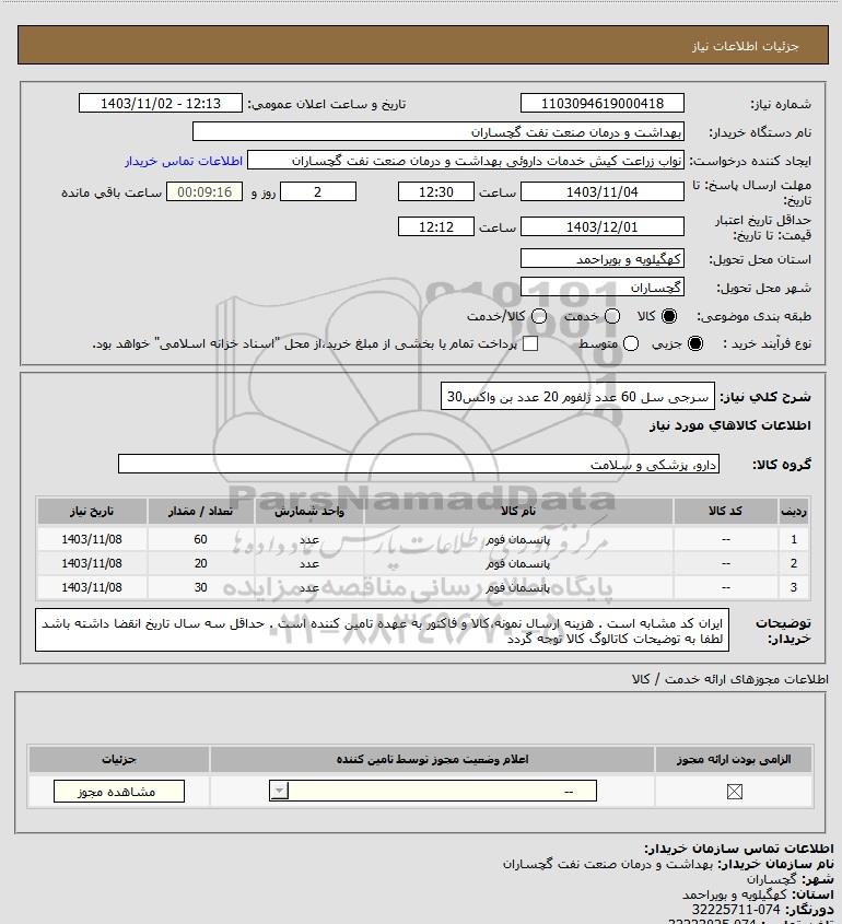 شرح کلی نیاز: سرجی سل 60 عدد