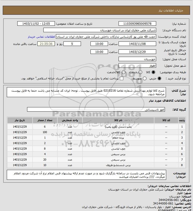 نام سازمان خریدار: شرکت ملی حفاری ایران در استان خوزستان