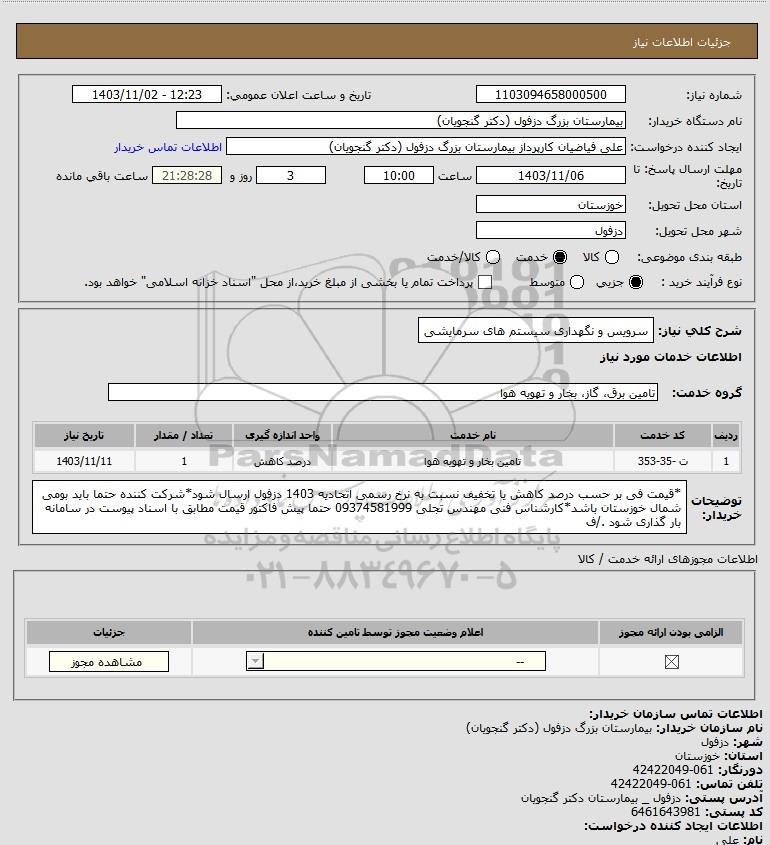نام دستگاه خریدار:بیمارستان بزرگ دزفول (دکتر گنجویان)