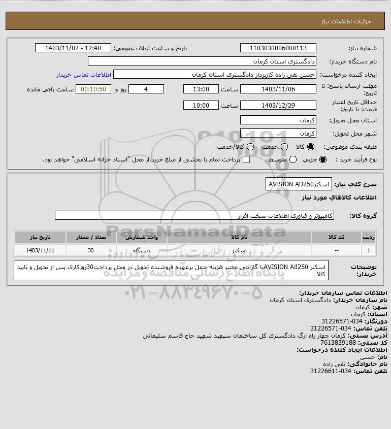 | 1 | -- | اسکنر | دستگاه | 30 | 1403/11/11 |