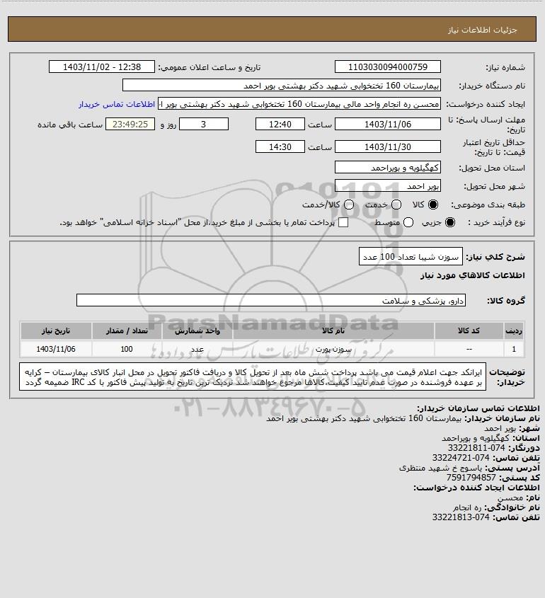استعلام سوزن شیبا تعداد 100 عدد, استعلام سوزن شیبا تعداد 100 عدد