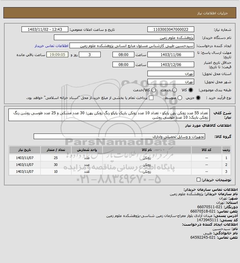 نام دستگاه خریدار:پژوهشکده علوم زمین
