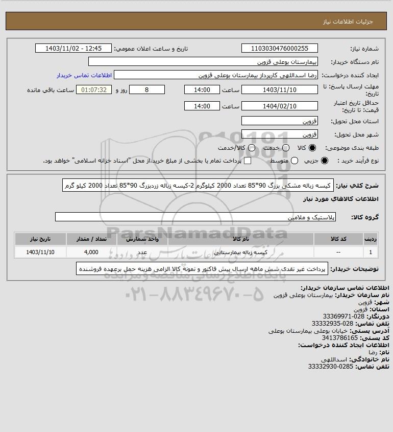 نام دستگاه خریدار:بیمارستان بوعلی قزوین