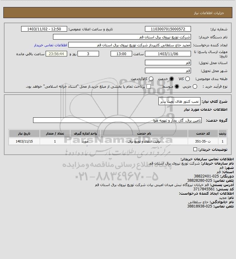 نام دستگاه خریدار:شرکت توزیع نیروی برق استان قم