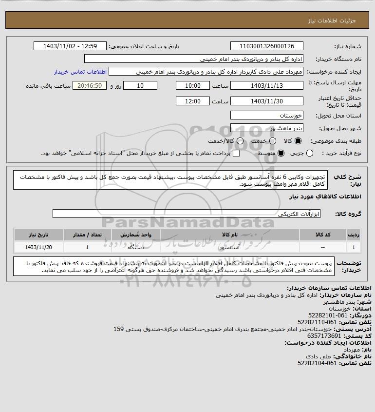 نام دستگاه خریدار:اداره کل بنادر و دریانوردی بندر امام خمینی
