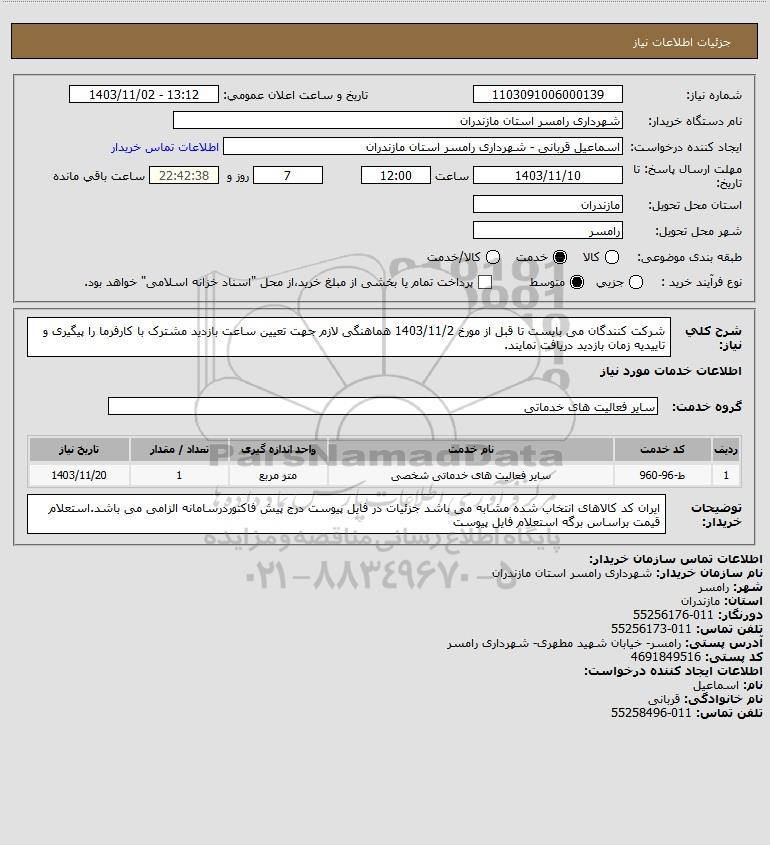 نام دستگاه خریدار:شهرداری رامسر استان مازندران