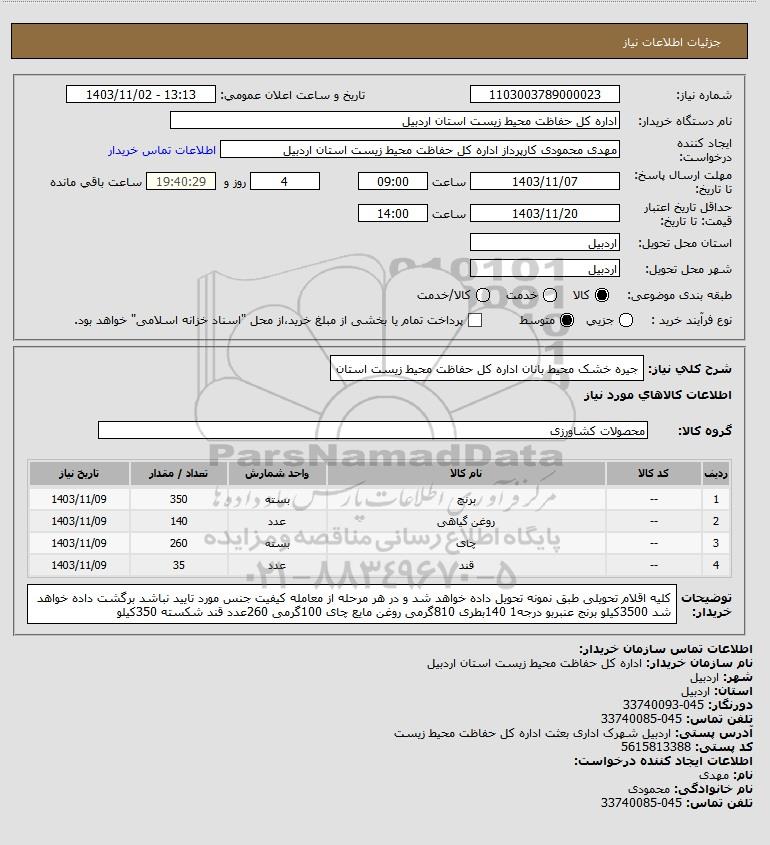 نام دستگاه خریدار:اداره کل حفاظت محیط زیست استان اردبیل