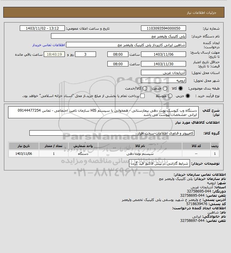 استعلام دستگاه وب کیوسک نوبت دهی بیمارستانی - همخوانی با سیستم HIS سازمان تامین اجتماعی - تماس 09144477254 ایرانی -مشخصات پیوست می باشد, استعلام دستگاه وب کیوسک نوبت دهی بیمارستانی - همخوانی با سیستم HIS سازمان تامین اجتماعی - تماس 09144477254 ایرانی -مشخصات پیوست می باشد