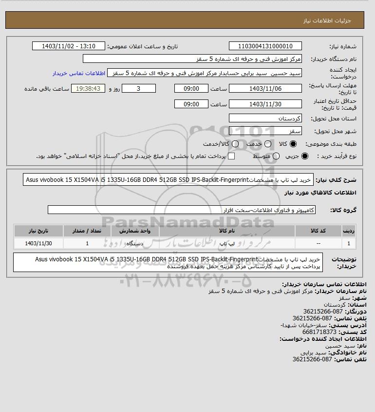 نام دستگاه خریدار:مرکز اموزش فنی و حرفه ای شماره 5 سقز