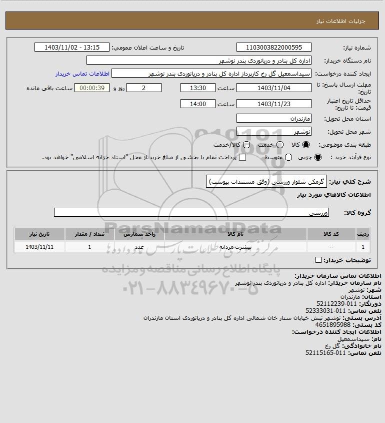 شرح کلی نیاز: گرمکن شلوار ورزشی (وفق مستندات پیوست)