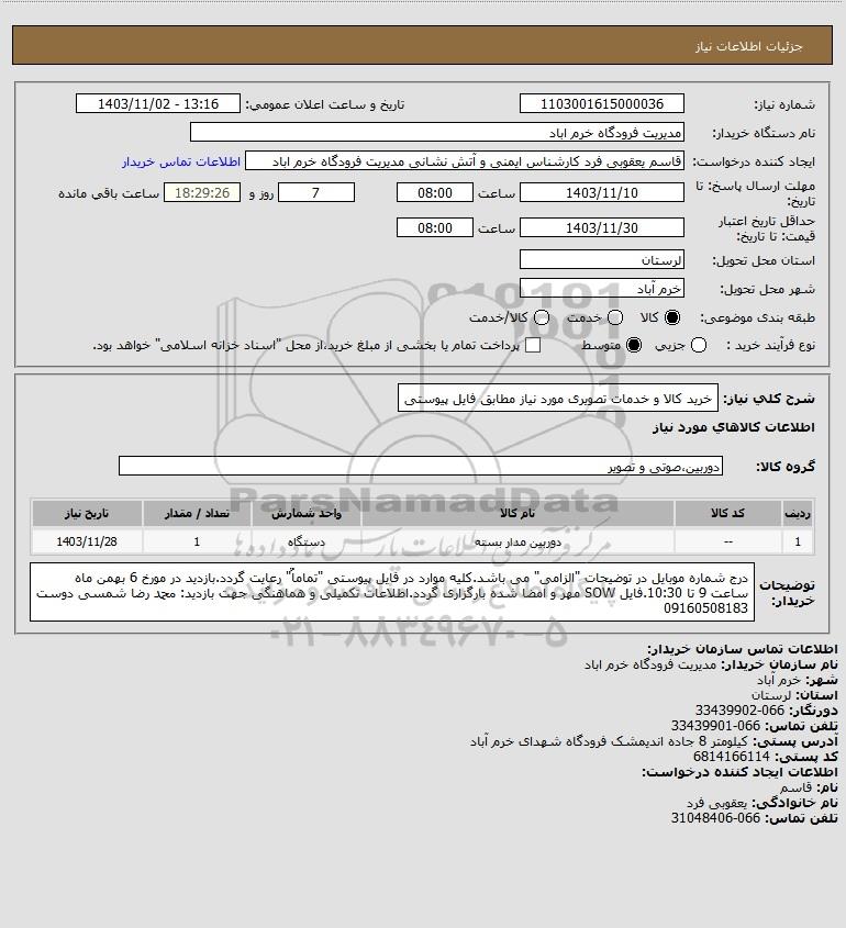 شرح کلی نیاز: خرید کالا و خدمات تصویری مورد نیاز مطابق فایل پیوستی