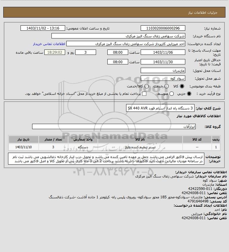 شرح کلی نیاز: 3 دستگاه راه انداز استام فورد SX 440 AVR