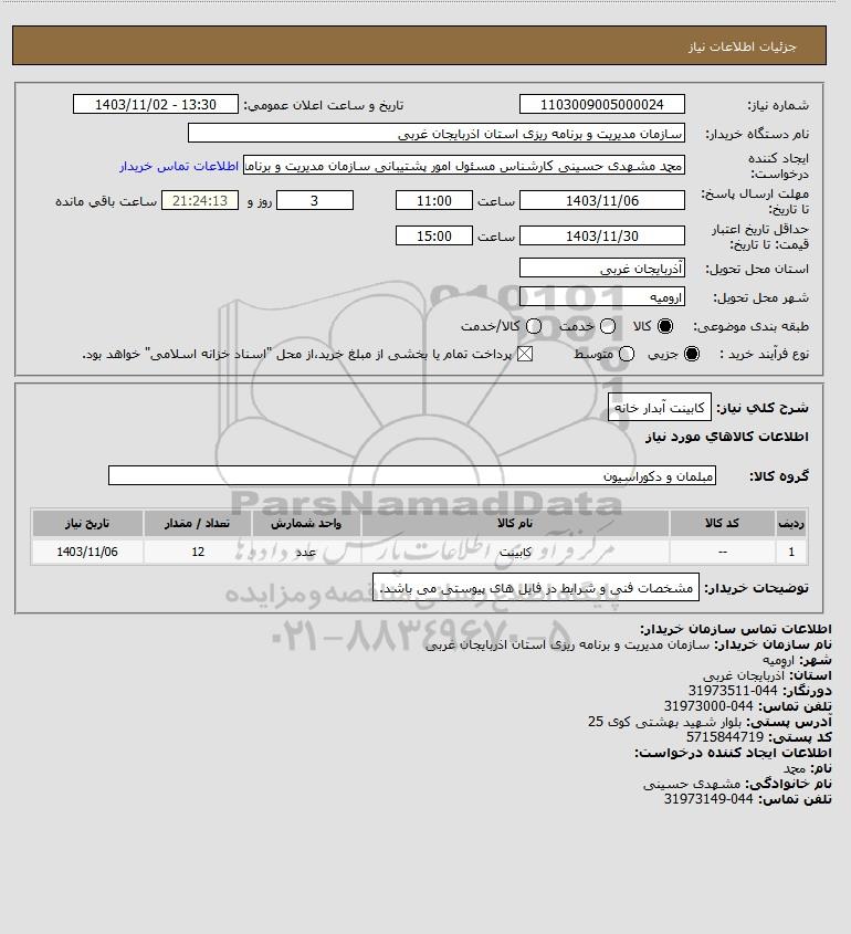 نام دستگاه خریدار:سازمان مدیریت و برنامه ریزی استان اذربایجان غربی