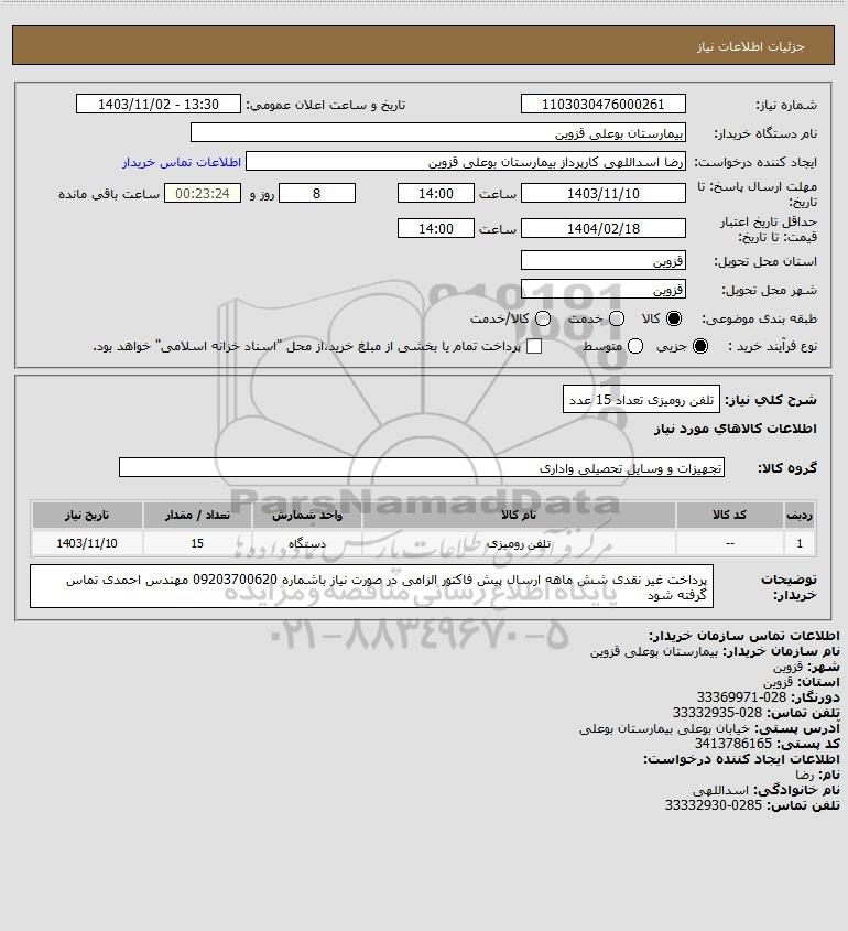 شرح کلی نیاز: تلفن رومیزی تعداد 15 عدد