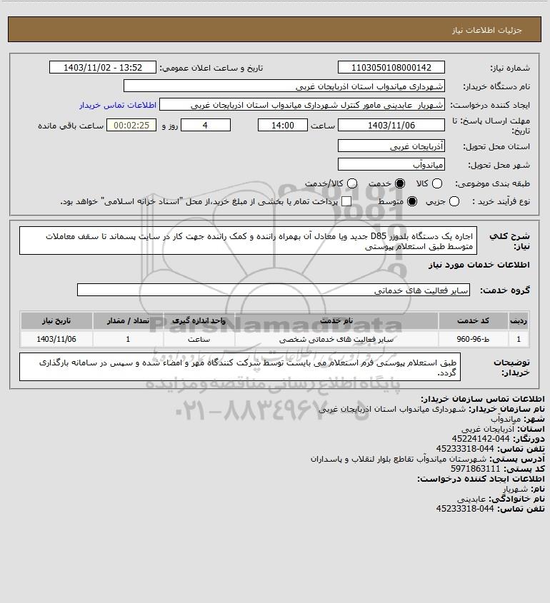 نام دستگاه خریدار:شهرداری میاندواب استان اذربایجان غربی
