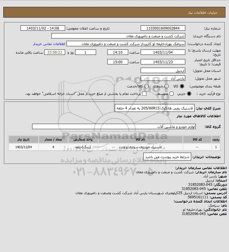 شرح کلی نیاز: لاستیک رویی هانکوک 205/60R15 به تعداد 4 حلقه