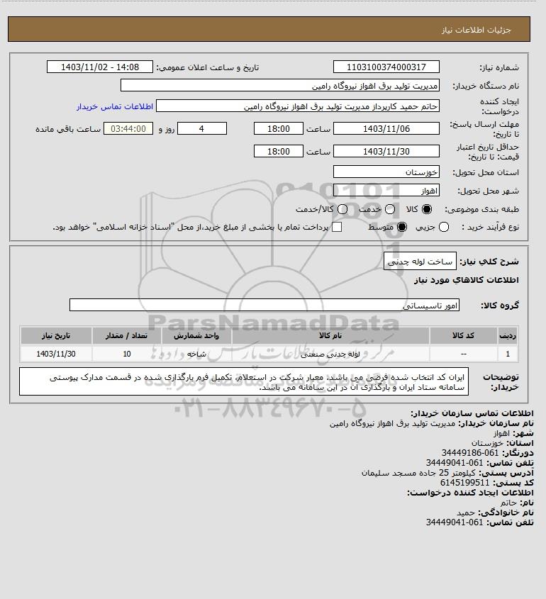 نام سازمان خریدار: مدیریت تولید برق اهواز نیروگاه رامین