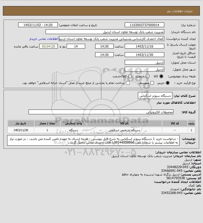 نام دستگاه خریدار:مدیریت شعب بانک توسعه تعاون استان اردبیل