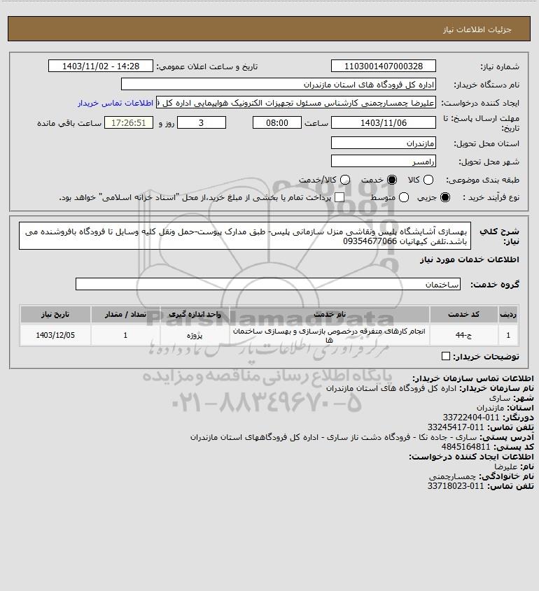 نام دستگاه خریدار:اداره کل فرودگاه های استان مازندران