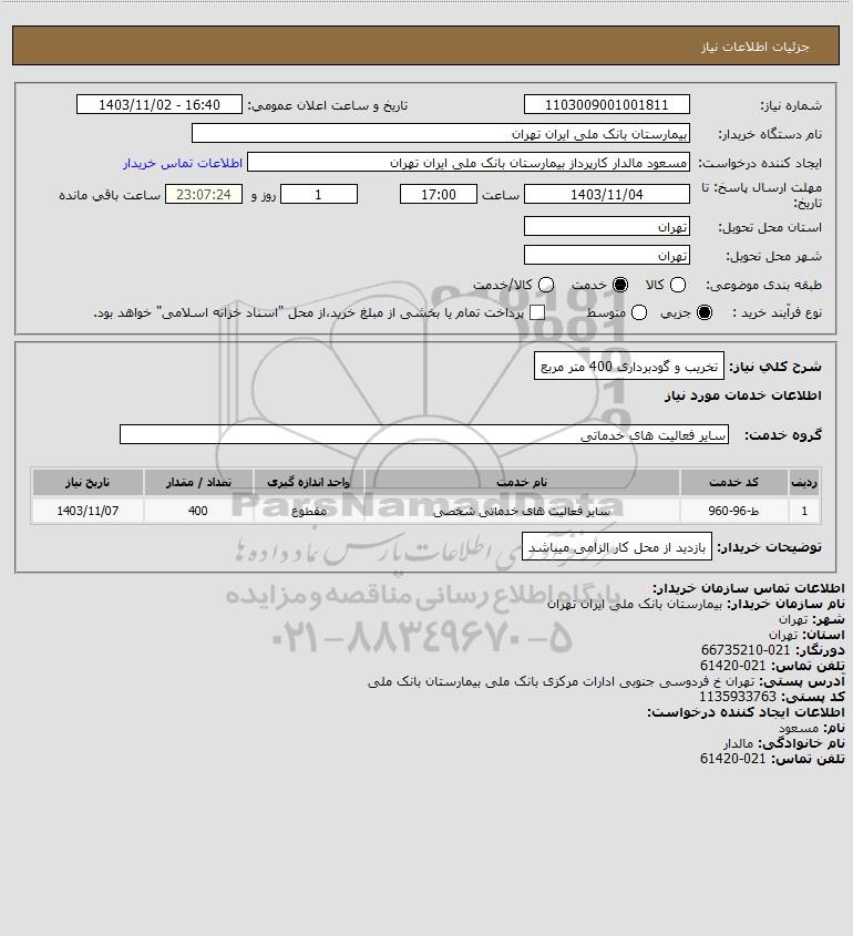 شرح کلی نیاز: تخریب و گودبرداری 400 متر مربع