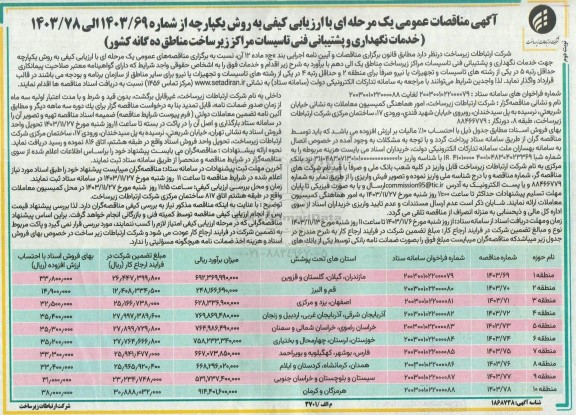 اگهی مناقصات عمومی با ارزیابی کیفی به روش یکپارچه خدمات نگهداری و پشتیبانی فنی تاسیسات مراکز زیرساخت مناطقه ده گانه کشور