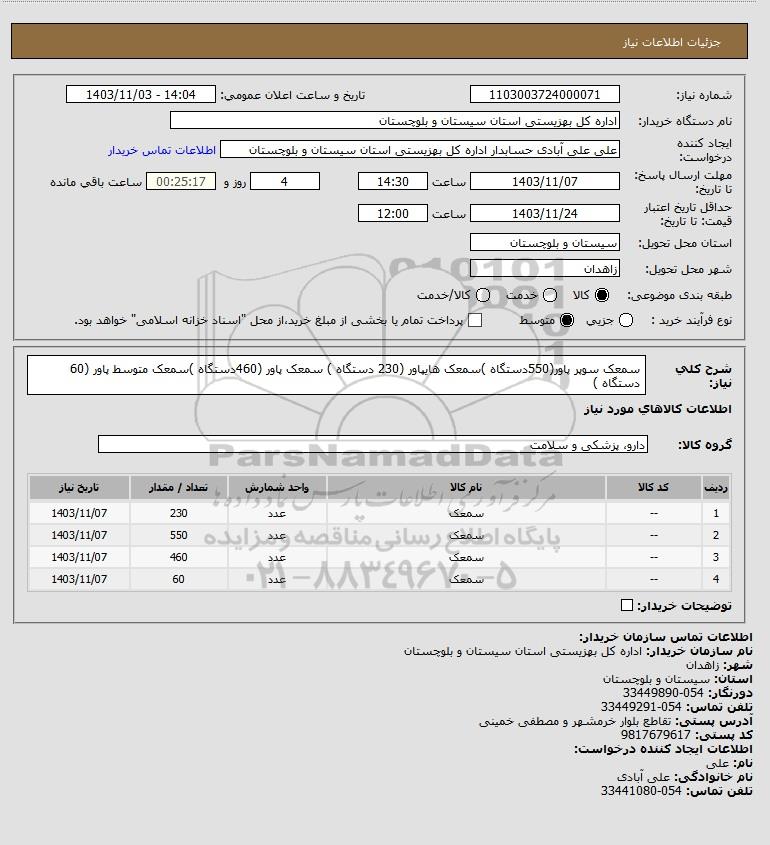 | 4 | -- | سمعک | عدد | 60 | 1403/11/07 |