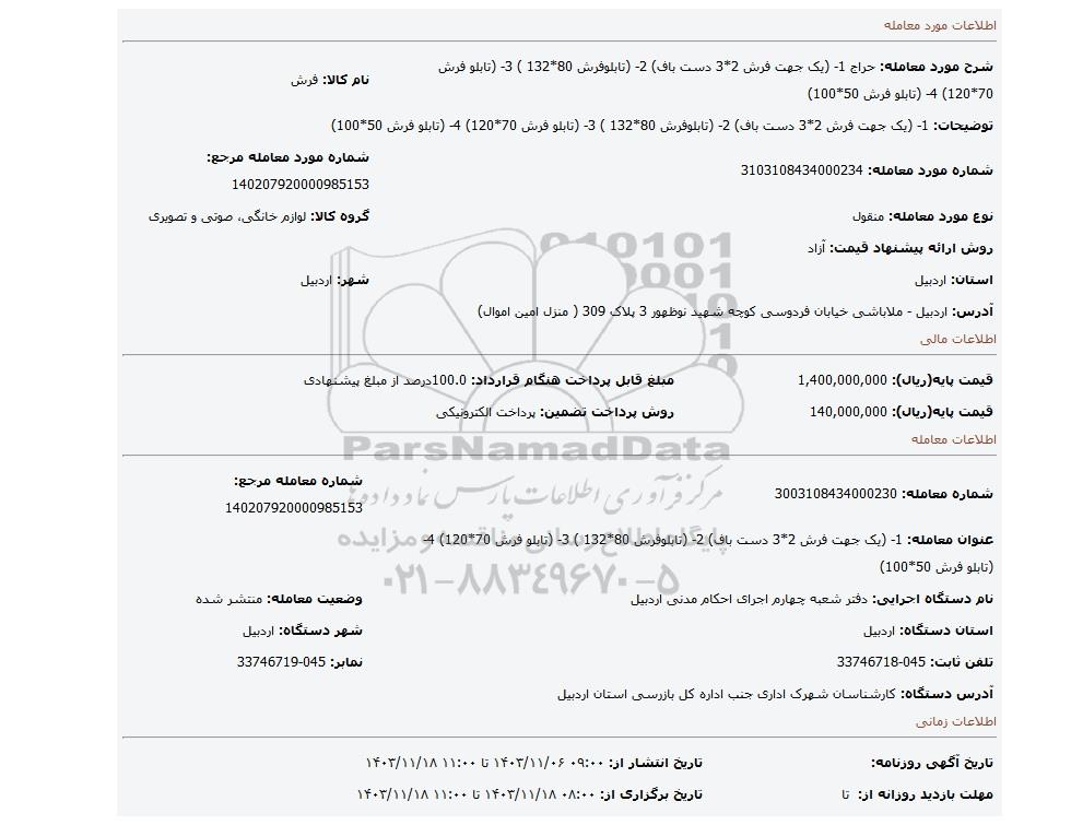 شماره مورد معامله: 3103108434000234 | شماره مورد معامله مرجع: 140207920000985153 | |