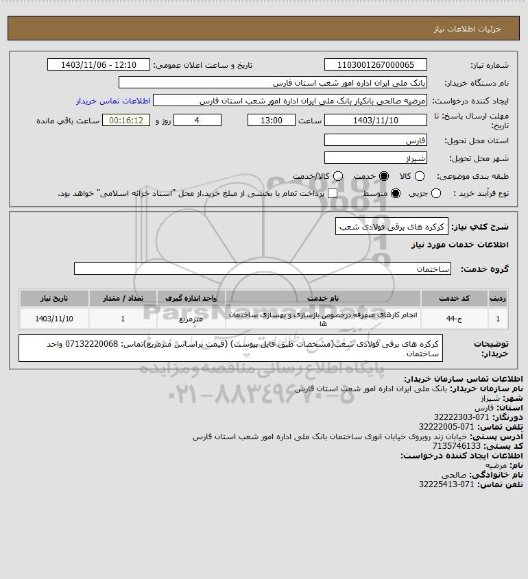 نام دستگاه خریدار:بانک ملی ایران اداره امور شعب استان فارس