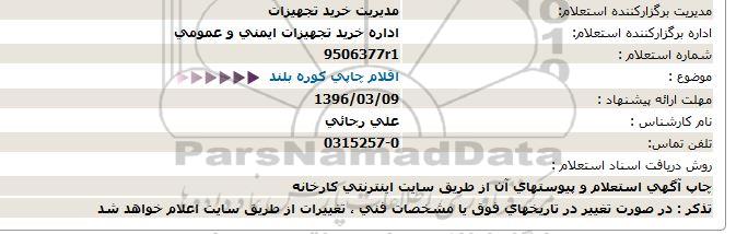 اداره برگزارکننده استعلام: اداره خرید تجهیزات ایمنی و عمومی