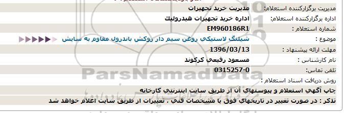 اداره برگزارکننده استعلام: اداره خرید تجهیزات هیدرولیک