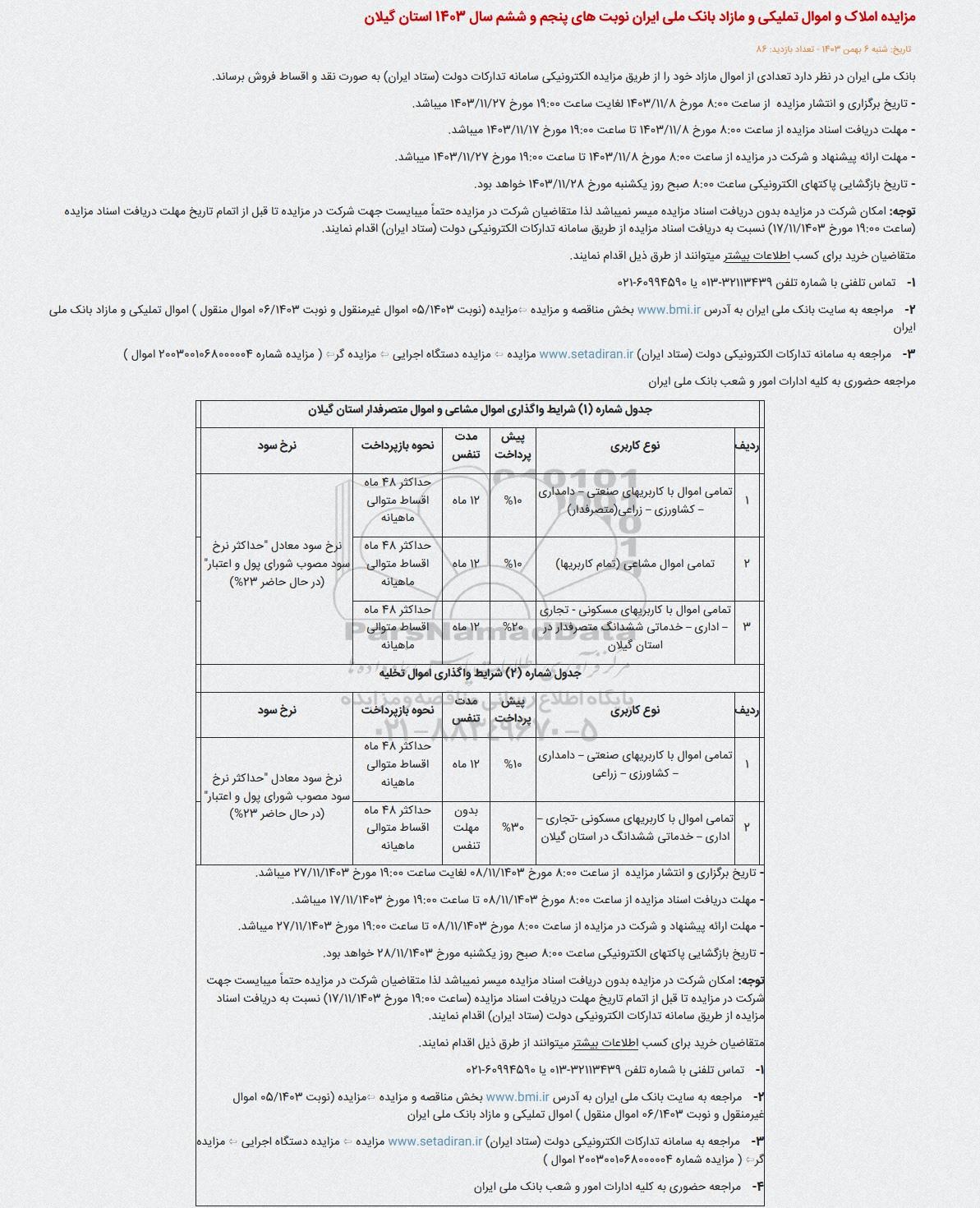 مزایده املاک و اموال تملیکی و مازاد بانک ملی ایران ؟