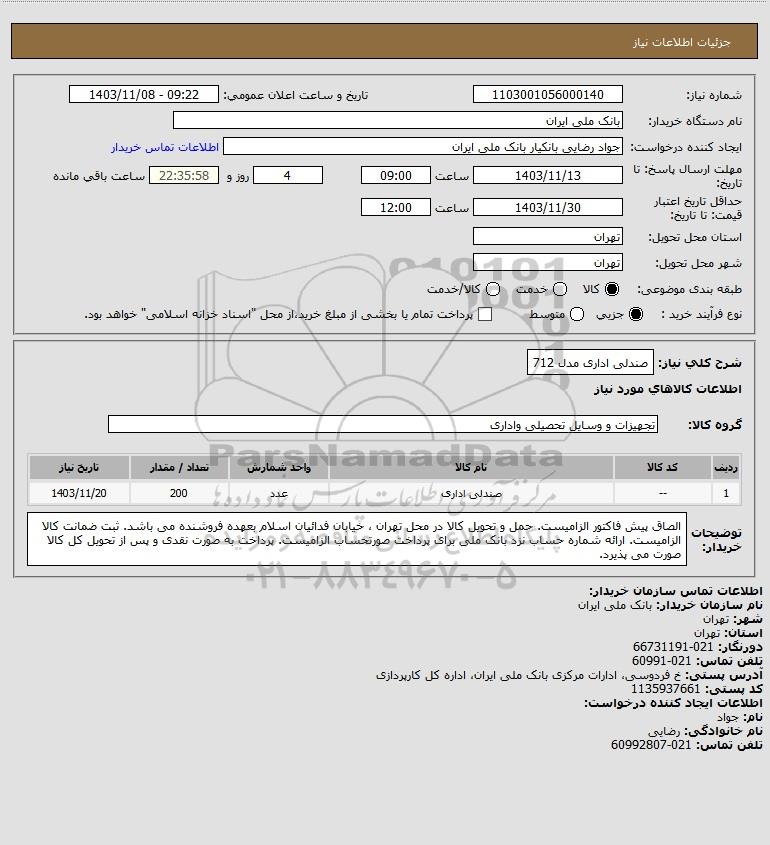 نام دستگاه خریدار:بانک ملی ایران