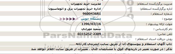 اداره برگزارکننده استعلام: اداره خرید تجهیزات برق و اتوماسیون