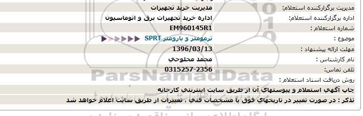 اداره برگزارکننده استعلام: اداره خريد تجهيزات برق و اتوماسيون
