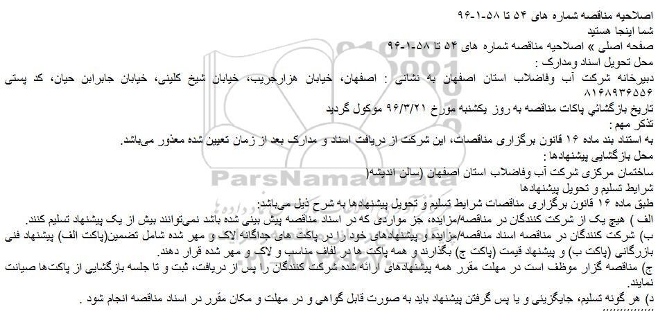 اصلاحیه مناقصه شماره های 54 تا 58-1-96
