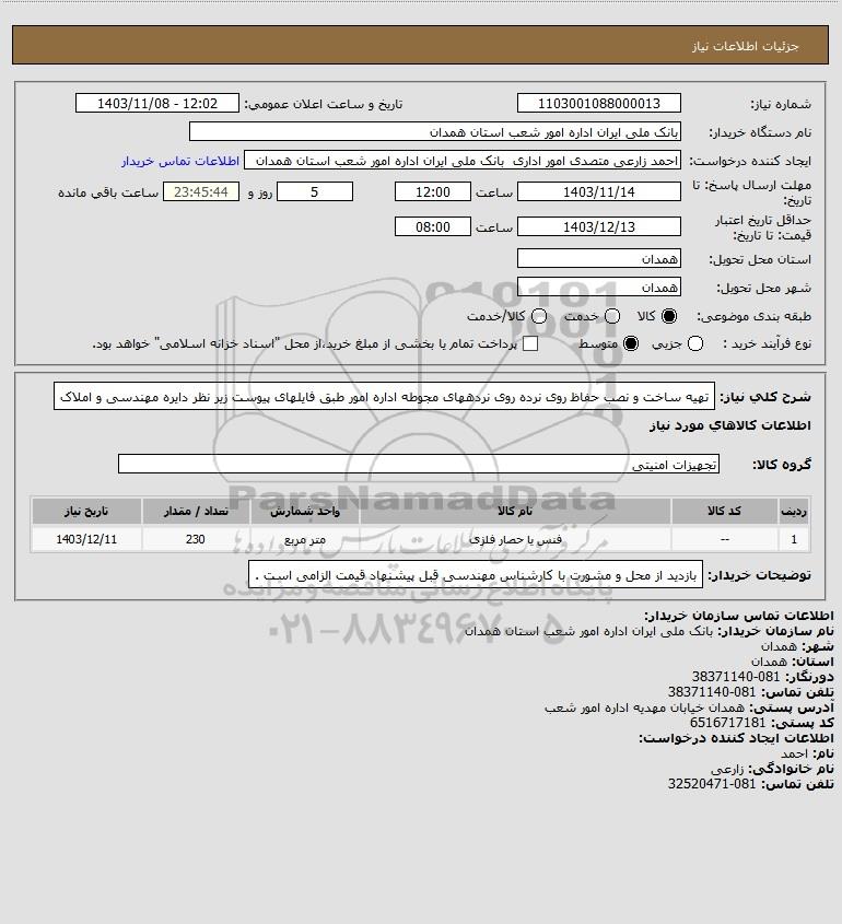 نام دستگاه خریدار:بانک ملی ایران اداره امور شعب استان همدان