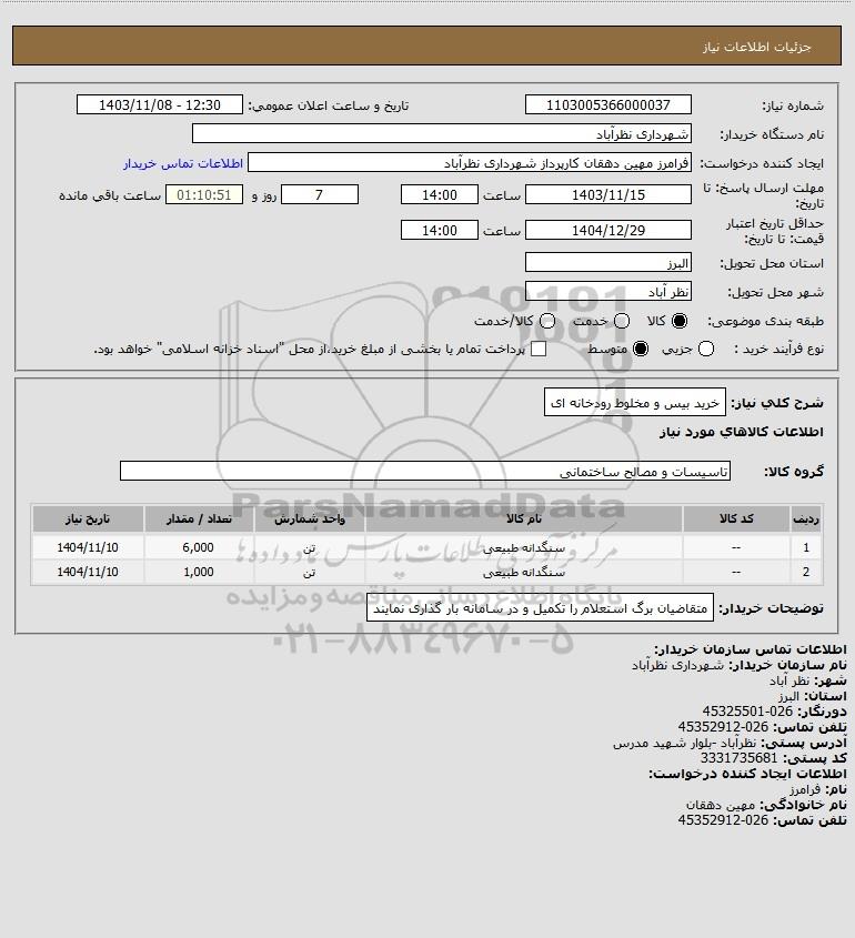 شرح کلی نیاز: خرید بیس و مخلوط رودخانه ای