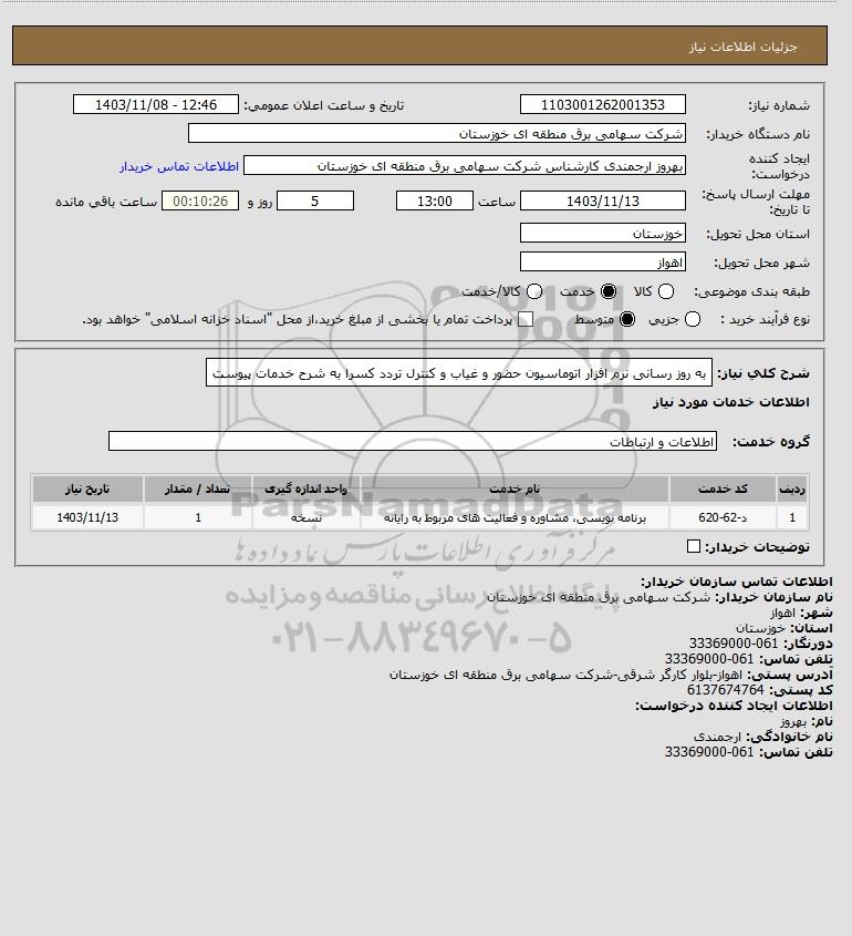 نام دستگاه خریدار:شرکت سهامی برق منطقه ای خوزستان